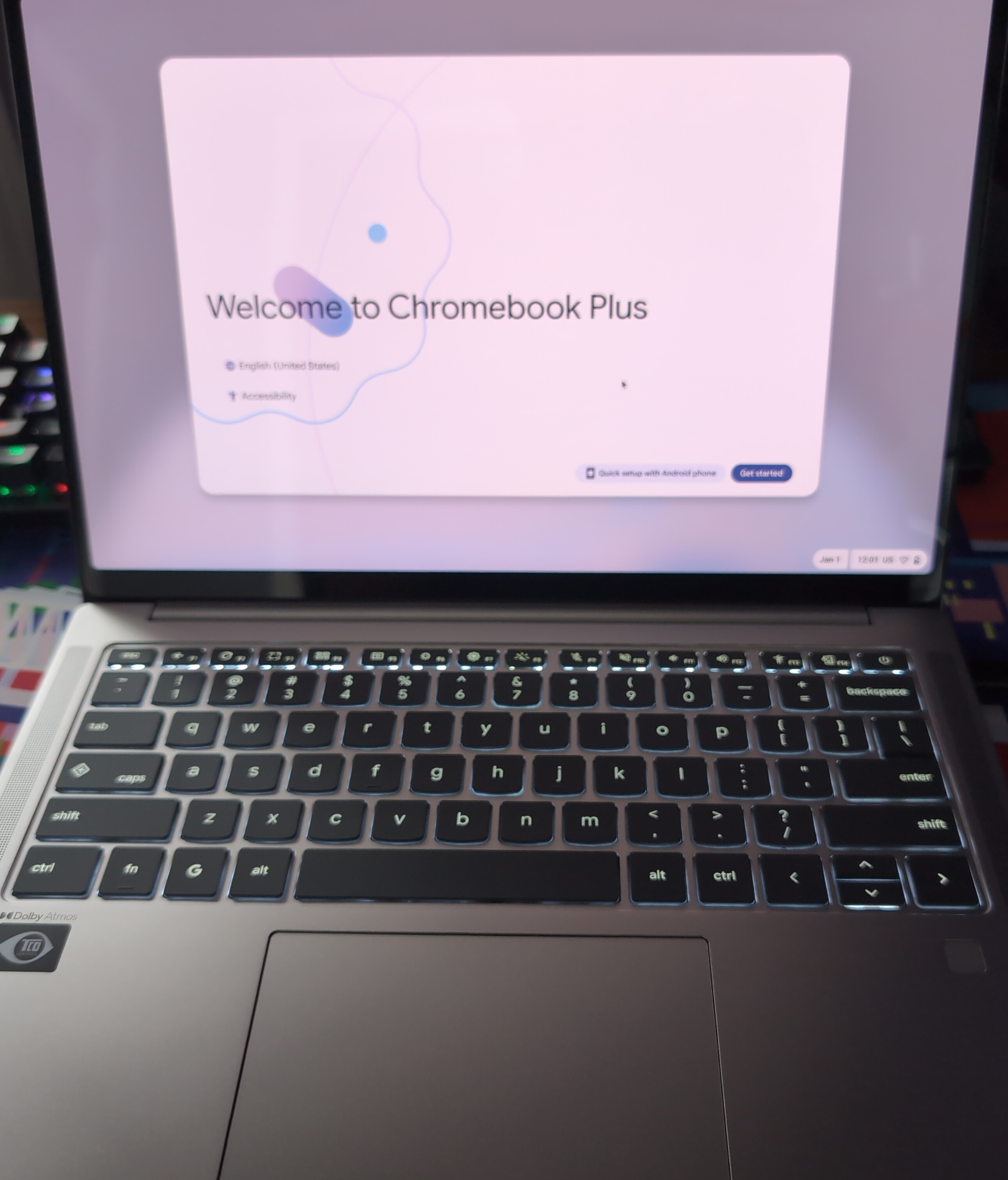 picture of the navi chromebook on the chromeos setup screen
